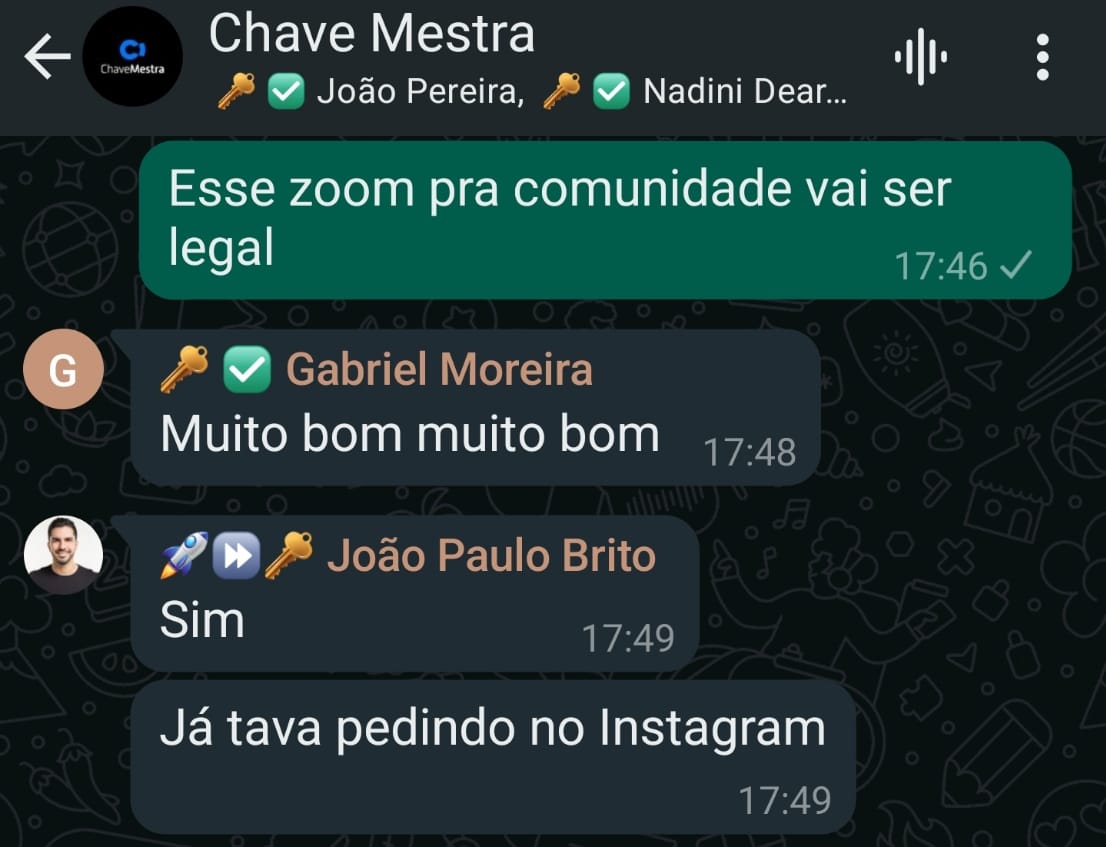 Vou fazer um evento ao vivo no Zoom exclusivo para membros da comunidade Chave Mestra.